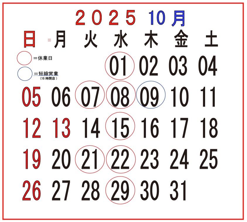 2025年10月の宏陽 営業日・休業日のお知らせです。